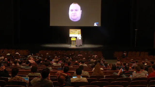 Samenzwering, het witwassen van geld. Het zijn aanklachten die normaal verbonden zijn aan kopstukken van de georganiseerde misdaad. Nu zijn ze ten laste gelegd aan Kim Dotcom en zijn compagnons, de mannen achter cyberlocker Megaupload. De Duitser bevecht momenteel zijn uitlevering aan Amerika, en dus spreekt hij SXSW toe via Skype, vanuit zijn huis in Nieuw Zeeland. "Zet de popcorn maar klaar, we gaan een hoop spectaculaire onthullingen doen bij de hoorzittingen."