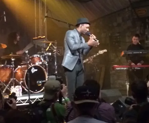 Met 'I need a dollar' rook hij in 2010 voorzichtig aan het eerste succes, maar met de Avicii wereldhit 'Wake Me Up' werd Aloe Blacc afgelopen jaar definitief uit de anonimiteit getrokken. Op de 'Def Jam 30 anniversary party' en op de dag van zijn derde albumrelease zet Aloe Blacc een overtuigende, fexibele soulshow neer voor een publiek dat hoofdzakelijk bestaat uit een bijzondere mix van 'interactive geeks' en hiphop lovers. Die laatsten zijn in de meerderheid en lijken vooral gekomen voor Pusha T, 2 Chainz, YG, Method Man en Redman, die allen later op de avond hun opwachting nog maken. Aloe Blacc weet ze direct voor zich te winnen door na R&B opener en huidige single 'The Man' - met verwijzing naar Elton John's 'Your Song' - het publiek toe te spreken over de legacy van hiphop en het Def Jam label in het bijzonder. 'You gotta know where you come from, hiphop is still alive'. De soul-uitvoering van 'Wake Me Up' geeft Blacc's band de ruimte om te laten horen wat ze kunnen, strakke blazers, ADHD-drummer en Aloe zelf die in smooth maatpak er niet voor schroomt quasi nonchalant het podium over te dansen. Nieuwe tracks van zijn album zoals 'Here Today' en 'Love Is The Answer' laten een volwassen Aloe Blacc horen, gelikt maar nergens over het randje. Terwijl voor het publiek zichtbaar on stage en backstage vele grote hiphopnamen zich verzamelen voor de rest van deze Def Jam avond, speelt Aloe Blacc's band 'Ni**as In Paris' als geïmproviseerde toegift, ongetwijfeld als tribute aan de zojuist ook in Stubbs gearriveerde Jay Z en Kanye West. (Wilbert Mutsaers)