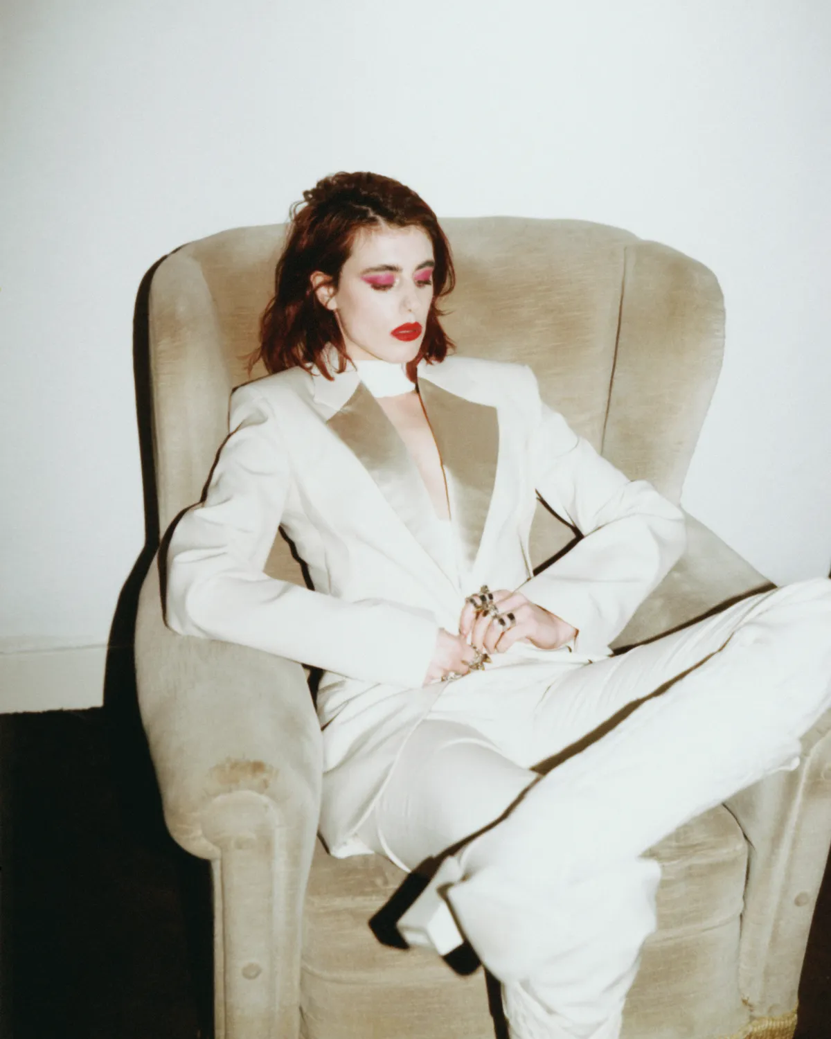 ‘Look at me now. I’m a redhead and I’m raging,’ zingt Kreusch in de eerste zin van nieuwe single ‘Let It All Burn’. En inderdaad, in de filmische openingsscene zit Sylvie Kreusch zelfverzekerd kronkelend op een motor met donkerrode lokken. De kleur gaat over in haar wapperende kledij.‘Er is iets met mijn haarkleur,’ zegt de Vlaamse. ‘Altijd als er een crisis in mijn leven is, verander ik het. Dit was de eerste keer dat ik megaveel kwaadheid voelde. Dus ben ik voor rood gegaan.’ Grijnzend: ‘De kleurshampoo heette ook nog eens raging red. Het is leuk om daarmee te spelen. Maar ik laat het nu uitgroeien. De kwaadheid is weg. De roots komen weer boven. Ik ben ook blond geweest, de naïeve periode. Ook de Warhaus-periode, toen was ik de lolita op het podium. Toen ik lost was, was mijn haar roze en blauw. Ik ging op zoek naar mezelf en dat ging meteen heel extreem.’