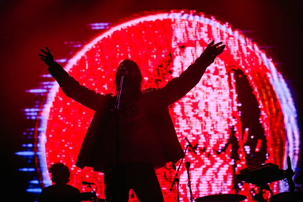 Dan gaan echt alle remmen los. Bij ‘Apocalypse Dreams’ verschijnt in de vertragende passages een reusachtige golf op het scherm, en dan begint de gigantische ring boven het podium te bewegen. Terwijl het nummer naar een slow motion fuzz climax beweegt daalt de ring met rook en vuur neer op de band, als een soort ufo. Hij stopt een meter of twee boven de muzikanten. Vanaf daar pakt de band door met het extatische ‘Let It Happen’, uiteraard de volle zeven minuten. ‘When it happens, let it happen’, galmt de hele AFAS Live mee, een ode aan het loslaten en het leven zijn gang te laten gaan, een thematiek die als een rode draad door het oeuvre loopt maar nergens zo krachtig is.