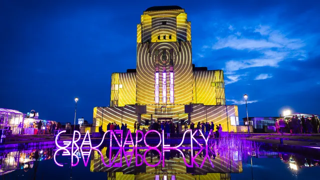 Sinds vorig jaar projecteert collectief Het Blauwe Uur de gevel van het iconische gebouw, en dit jaar hebben zij hun eigen moment in het blokkenschema gekregen. Met een korte animatie wordt vijf jaar Grasnapolsky op Radio Kootwijk herinnerd. Dit vormt voor veel festivalbezoekers het begin van het laatste deel van het festival.