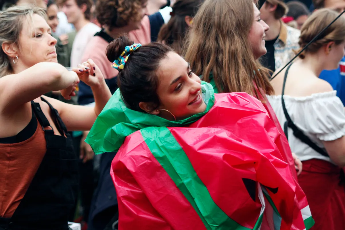 Het zorgt er ook voor dat je jezelf gemakkelijker kunt verliezen, zo lijkt het. Waarom anders sta je om half vijf ‘s middags al lachend en met gebalde vuist naar Aurora Halal te zwaaien, terwijl de Amerikaanse toch bepaald geen vrolijke muziek draait. Die doet gewoon alsof ze niet in een stadspark maar in een zweterige nachtclub staat, waar ze doorgaans haar nerveus cirkelende acidtechno op de massa loslaat.