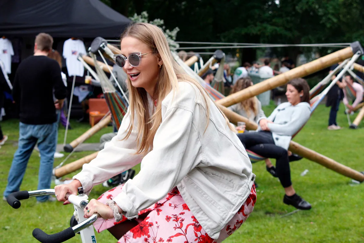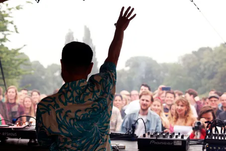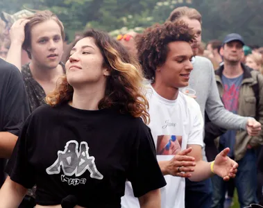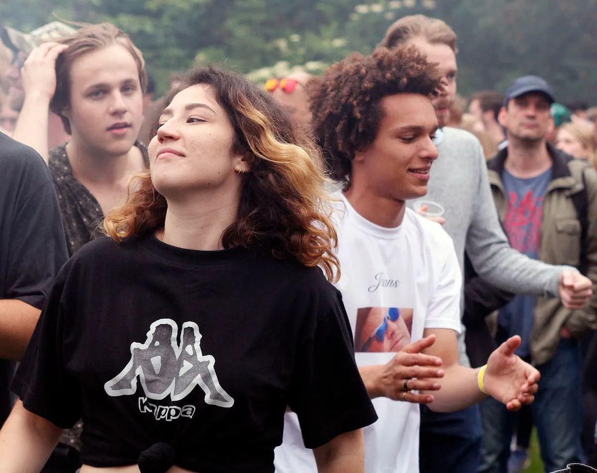 Scheen toen de zon uitbundig, vandaag laat de genodigde het akelig afweten. Het is de hele dag grijs en af en toe valt er zelfs wat lichte miezer uit de lucht. Maar koud is het niet in het uitgestrekte Zuiderpark en al snel lopen de velden vol. Het festival is met 5000 kaarten uitverkocht, al voelt het gelukkig niet zo. Overal is plek zat en met vier podia bovendien overzichtelijk genoeg om niet telkens je vrienden kwijt te raken.
