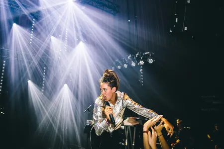 Door naar de eerste headliner van de avond: de Londense zanger Sampha. Jarenlang viel zijn hese, broeierige stem vooral op op songs van Solange en Frank Ocean, van Drake en Kanye en van SBTRKT. In februari bracht hij eindelijk debuutalbum Process uit, en inmiddels heeft hij zich steeds meer ontpopt van timide emoboy tot R&B-zanger die durft op de voorgrond te treden. Het beste klinken vandaag de stemmige pianoballads ‘Too Much’ en ‘(No One Knows Me) Like the Piano’ en het uptempo slotnummer ‘Blood On Me’ met een nogal episch en groots uitgebouwd trommeloutro. Gisteren speelde hij al in een uitverkochte Paradiso, maar zijn stem lijkt het tourleven nog niet helemaal aan te kunnen. Regelmatig vecht hij tegen zijn limiet, af en toe zingt hij gewoonweg vals en sommige coupletten besluit hij maar gewoon een octaafje lager te doen. Zonde, maar als hij zijn stem onder controle krijgt kan hij met deze solide show zo door naar de Bravo op Lowlands.