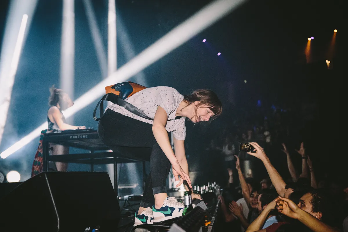 Oh ja, maar we hadden het over leuke lelijkheid. Daar heeft ook de Ierse Bonzai wel kaas van gegeten. Ze speelde vorig jaar ook al op Catch, toen als zangeres bij Mura Masa. Nu is ze onder haar eigen naam naar Utrecht gekomen. En haar muziek klinkt eerlijk gezegd goed lelijk: dan weer een track zo lomp als The Prodigy, dan weer een stukje grime, dan een hele berg misthoorns. Ze lijkt twintig jaar aan UK-producties in haar set te willen persen, zozeer zelfs dat een jongen op weg naar buiten gromt dat je het bijna ‘cultural appropriation’ zou kunnen noemen. Maar je raadt het al: het werkt ontzettend goed. 'Energy! Energy!', roept haar toetsenist telkens weer volgens beproeft grime-recept. Wie zich aan de lelijkheid durft over te geven, wordt al gauw deel van een grote kolkende mensenmassa. Vooraan staan een stel Britse meisjes keihard te gillen, ze proberen telkens weer de hand van Bonzai vast te pakken wanneer ze in de buurt komt.