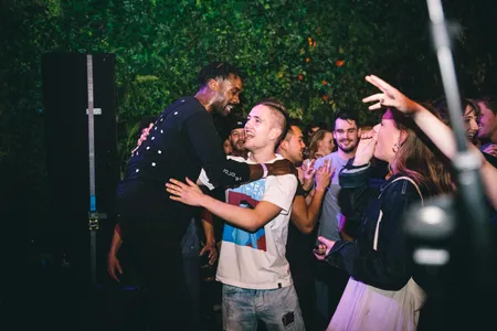 Je zou bijna zeggen dat The Gaslamp Killer het smaakvoller aanpakt, maar dat is natuurlijk ook niet echt waar. De hyperactieve mafkees verkeert al jaren in de L.A. beats-scene van Flying Lotus, en zijn dj-sets zijn vaak een wereldreis en geschiedenisles ineen. Hij schiet door alle genres heen met een dikke grijns en het geduld van een ADHD’er aan de speed. Vanuit Kendrick Lamar draait hij vanavond naar een Pakistaanse band die J. Dilla covert met strijkers, en van Syrische muziek (‘voor mijn grootmoeder!’) naar Radiohead-klassieker ‘National Anthem’. Hij draait al jarenlang zulke gestoorde en avontuurlijke sets, en het publiek vindt het ook in 2017 nog geweldig, zo te zien. Tussendoor pakt hij telkens weer de microfoon om politiek getinte speeches te houden: ‘Ik ben hier een jaar niet geweest, en er is sindsdien zoveel veranderd. Maar jullie zijn het meest cultureel diverse land ter wereld, met immigranten uit de hele wereld. Vergeet dat niet! Onze kracht ligt in onze diversiteit. Fuck de gedachte “immigranten zijn shit”. Dat zijn ook gewoon maar mensen, die de narigheid proberen te ontvluchten.’ Er volgt een luid gejuich, maar zijn boodschap lijkt niet bij iedereen aan te komen. Een paar jongens staan helemaal uit hun naad verder te dansen terwijl er al een minuut geen beat te horen is. Desalniettemin siert het The Gaslamp Killer wel, en de boodschap past honderd procent bij zijn set.