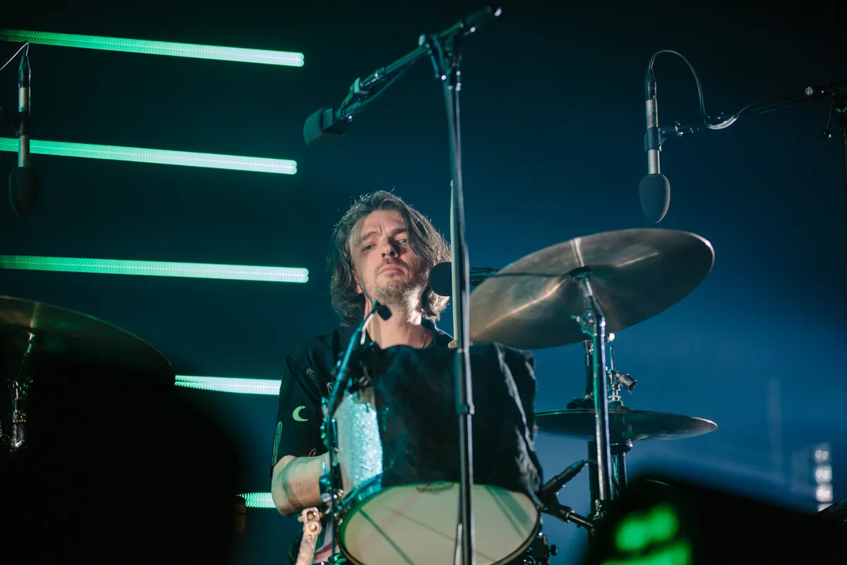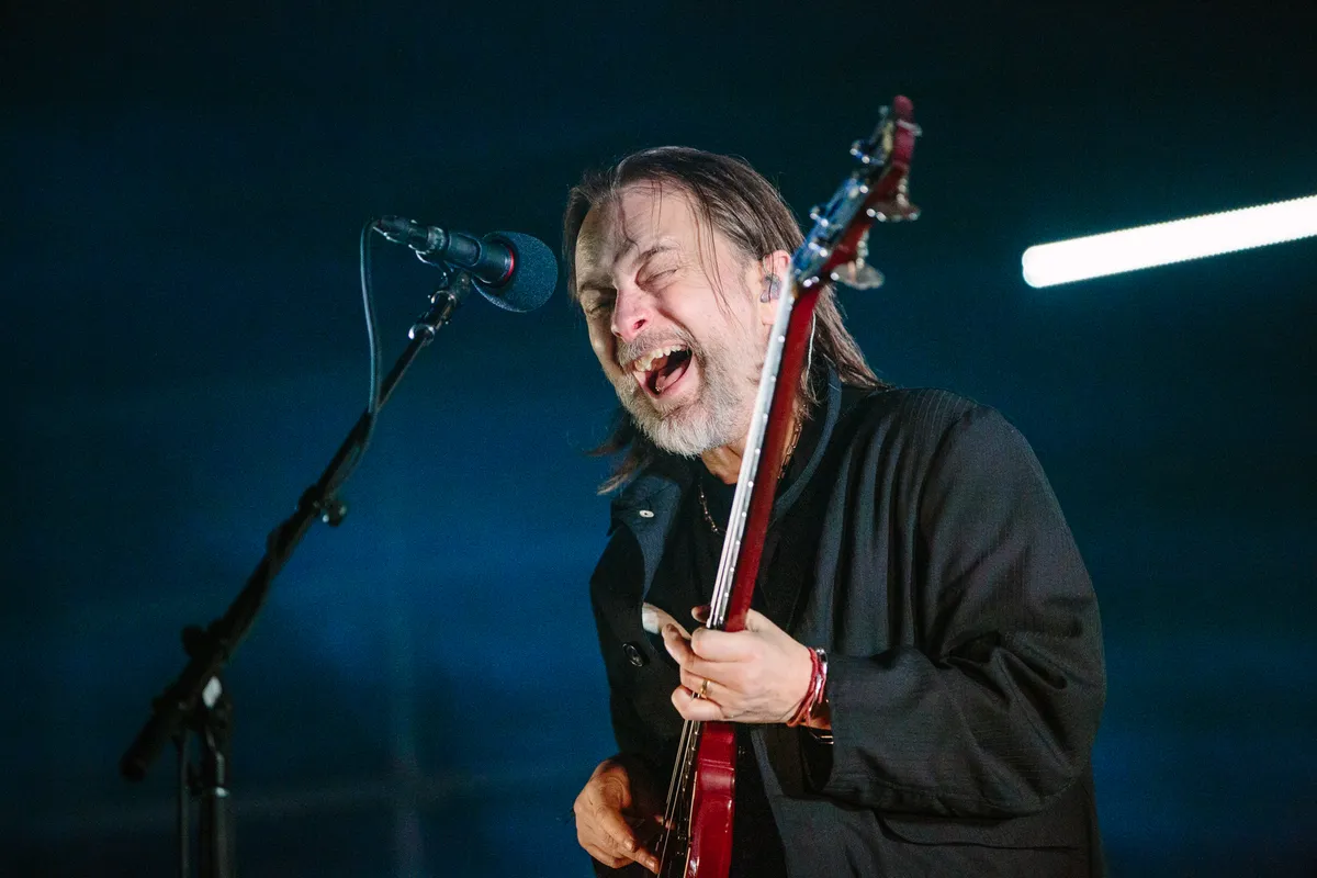 Virtuositeit staat vaak gelijk aan gladgestreken en uitzonderlijk netjes spel. Te vaak. Maar zo niet bij The Smile. Thom Yorke, Jonny Greenwood, Tom Skinner en officieus vierde bandlid Robert Stillman spelen vanavond in AFAS Live wel degelijk virtuoos, maar er zit een soort wilde vrijheid in hun muzikantschap, de manier waarop ze hypercomplexe maatsoorten aanvliegen en hun songs slechts als een startpunt benaderen, veel meer nog dan bij Radiohead. Het knettert, elke song weer. Kijk dan hoe Yorke in ‘Skrting on the Surface’ glimlachend zijn hoofd op en neer wiegt terwijl zijn hand door de lucht fladdert op 11/8, en tussen de songs door vrolijke kreetjes slaakt. ‘Foooookking hell!’, roept hij tussendoor naar Greenwood. Ja, het is werkelijk heerlijk om te zien hoe verliefd hij op zijn eigen repertoire is.