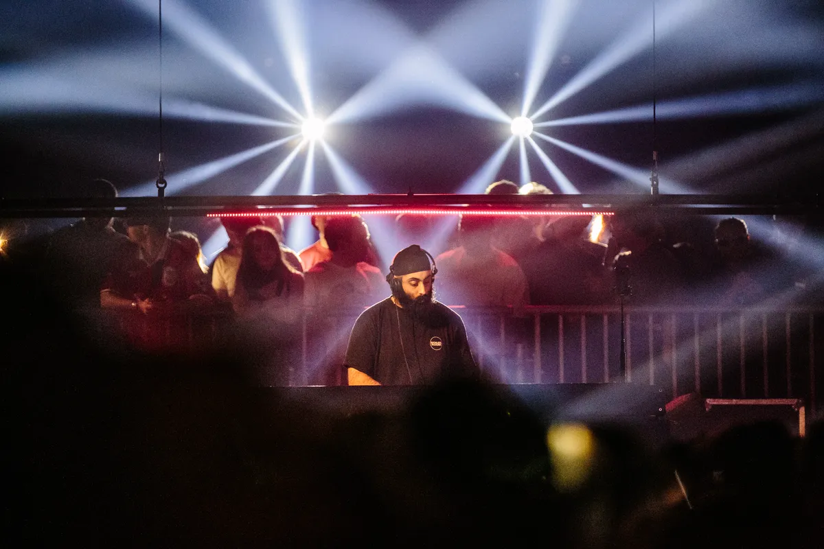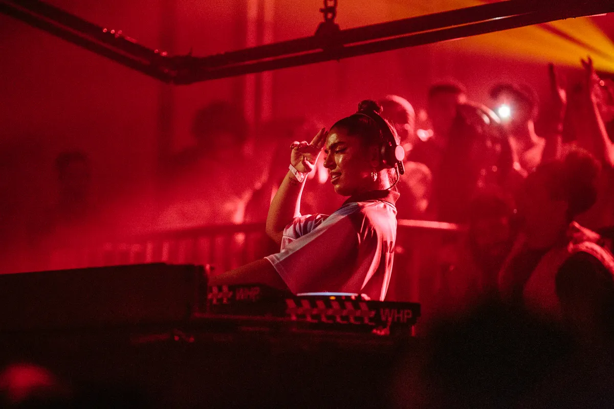 Onder de Britten is Jyoty zo langzamerhand een superster aan het worden. Kijk alleen al naar de dagen die ze achter de rug heeft. Precies een week geleden nam ze haar eerste Essential Mix op voor BBC Radio One. Een dag later? Met haar goede buddy Skrillex in de privéjet naar Coachella, waar hij de mainstage afsloot met Fred again.. en Four Tet. Daar draaide hij nota bene een track gebouwd rondom Jyoty’s stem, en op de Coachella-afterparty gingen Jyoty en Skrillex zelfs b2b. Al anderhalve week heeft ze dus nauwelijks een oog dichtgedaan, weet iedereen die haar op Instagram volgt. Maar zodra ze weer achter de draaitafels staat? Dan verdwijnt die vermoeidheid zo te zien in een milliseconde, want niemand geeft deze vrijdagnacht zoveel energie als Jyoty.