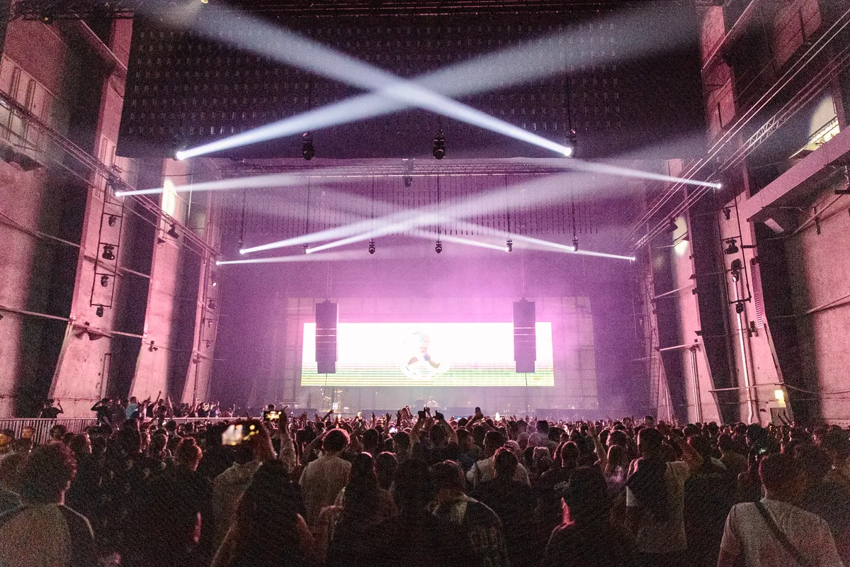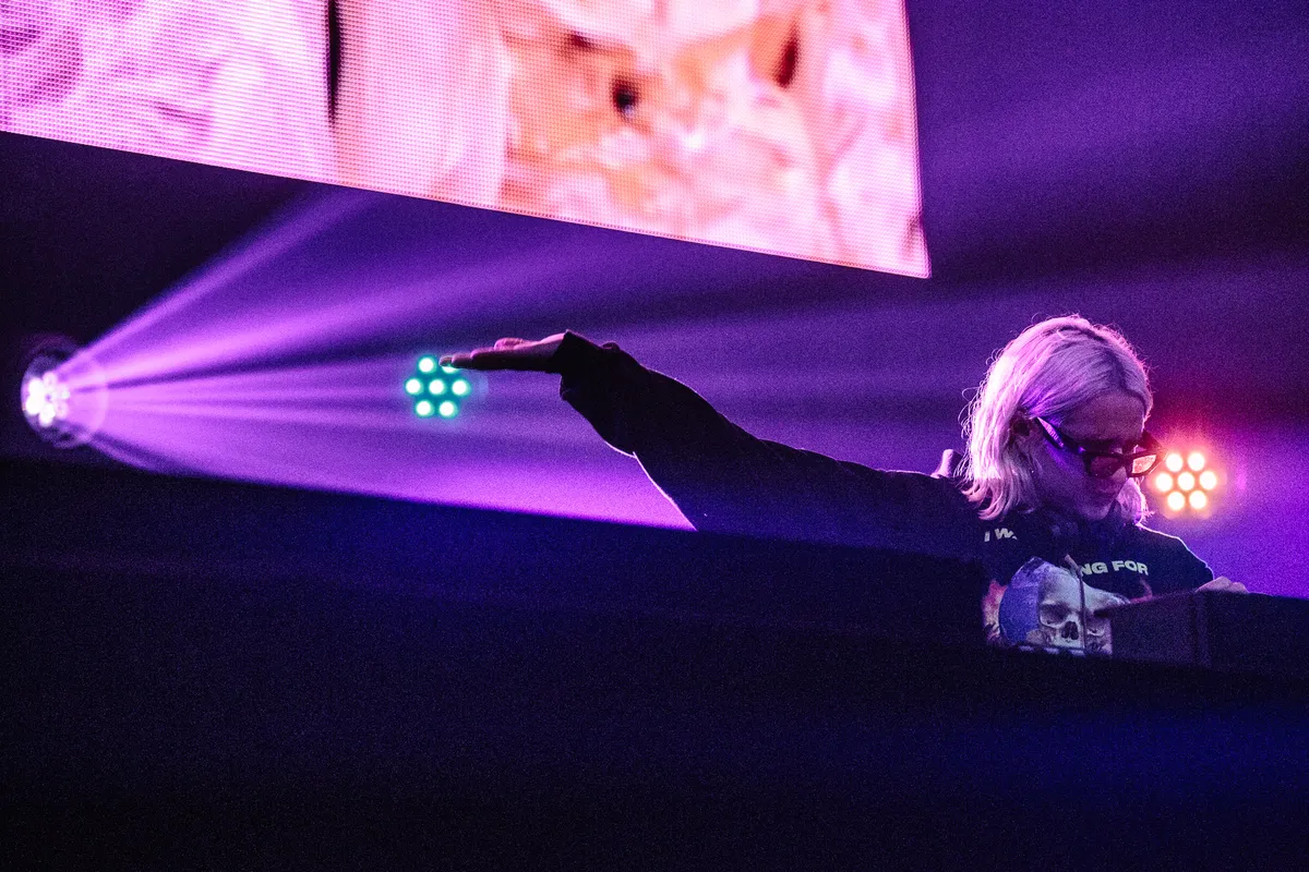 Veel dj’s lijken daar vanavond een beetje mee te worstelen. HAAi, de übercoole Australische die afgelopen jaren werkte met Daniel Avery, Jon Hopkins, Kelly Lee Owens en natuurlijk Romy en Fred again.. laat aanvankelijk haar liefde voor shoegaze en glazige ambient nog doorsijpelen in de breakbeats die ze draait. Hmmm, slaat niet aan. Dus racet ze via de (overigens weergaloze) Bambounou-edit van Britney’s ‘Piece of Me’ naar loeiharde loopy techno en ehm…. zodra zelfs dat niet echt aanslaat en ze van de gekkigheid ook niet meer weet waar ze het zoeken moet, komt ze uiteindelijk uit bij de hardstyle van Showtek (?!) om die loods maar tot beweging te dwingen.
