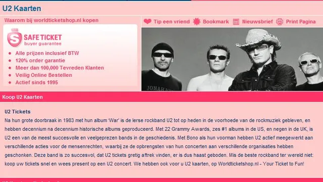 U2 speelt 9 tot en met 11 juli 2009 in de Rotterdamse Kuip. Althans, volgens online ticketbureau Worldticketshop.nl. Organisator Live Nation, waar U2 onder contract staat, ontkent dit. Verkoopt het bureau hier kaarten voor een niet-bestaande tour? “Dit geval is pure oplichting.”