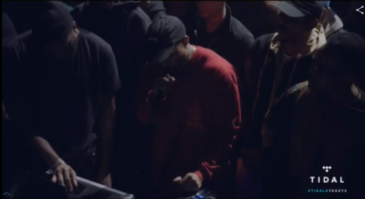 Een show als deze met honderden modellen, zo strak opgesteld en geïnstrueerd, honderden bioscopen over de hele wereld waar het live vertoond werd, een streamingplatform die de paywall opheft voor thuiskijkers, een album van dit formaat dat nog niet gelekt is en nog zo geheimzinnig is: veel professioneler krijg je het niet. Tegelijk was het allemaal tergend amateuristisch. Dat begon al toen Kanye opkwam. Hij moest nog even met een aux-kabel zijn laptop aansluiten, zodat de muziek te horen was. Was dat uit angst dat zijn laptop en muziek weer gejat zou worden? Kgggg, kraakte het luid. Later ook, toen Kanye toch even een nieuwe track van Young Thug van zijn iPod wilde laten horen. Kggggg! Oh, en Vic Mensa, deze nieuwe track van jou ook nog! Kggggggg. Alsof het tegelijk ook het einde was van een dronken feestje waar de muziek op was. Iedereen nog even snel zijn telefoon aansluiten om een hitje te draaien. En dan was er nog de stream. Hartstikke leuk dat Kanye zijn vriend Jay Z helpt, door de show live te streamen op diens Tidal, maar het werkte echt totaal niet. Dit had goede reclame voor de dienst kunnen zijn, maar de haatberichten vlogen rond op social media.