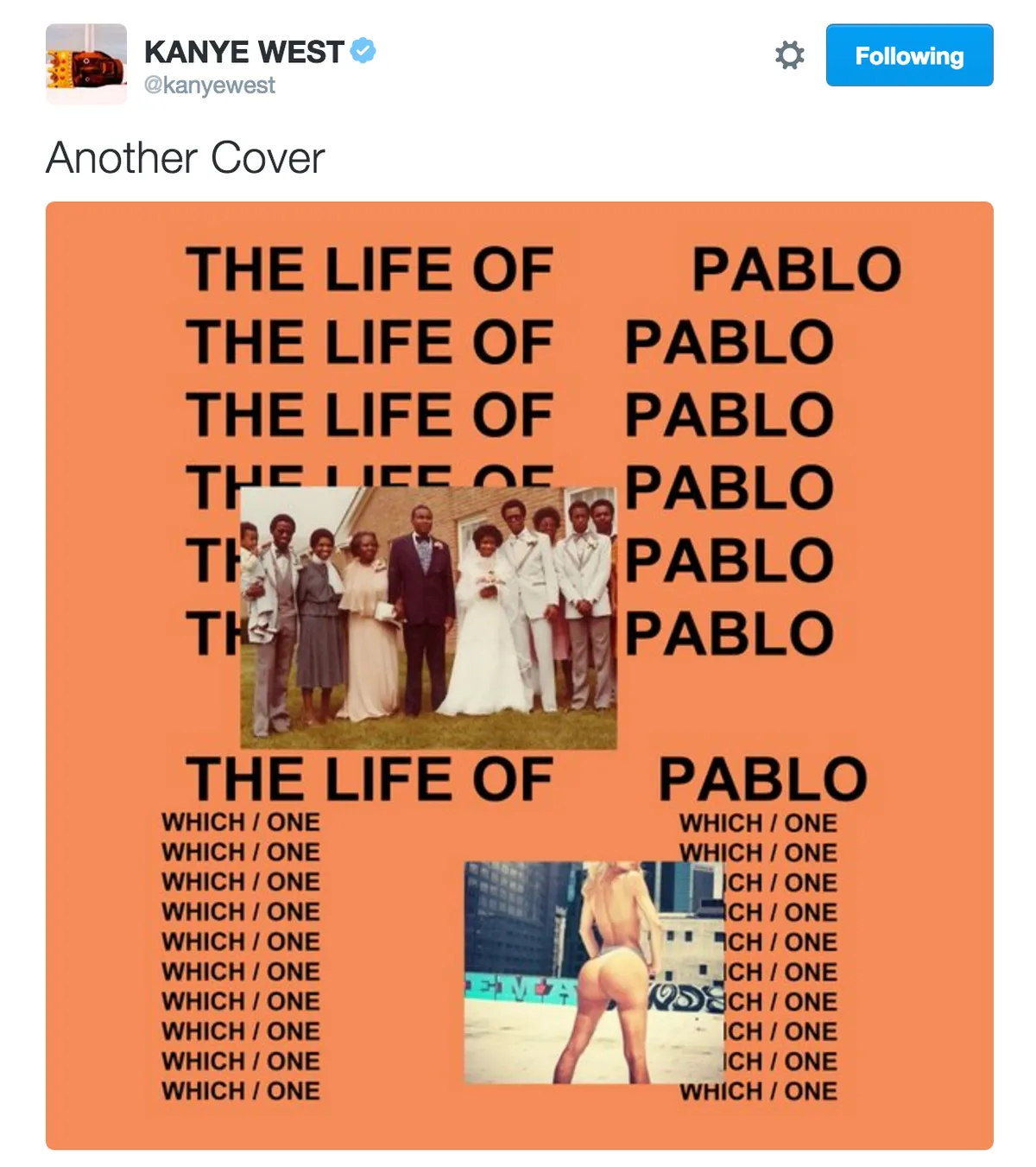 In 2013 kondigde Kanye West de opvolger van Yeezus aan: So Help Me God. Het album moest in 2014 uitkomen. In mei 2015 kondigde Kanye aan dat het album SWISH ging heten, in januari 2016 veranderde hij het in Waves. Inmiddels is duidelijk dat het album toch anders heet: The Life Of Pablo. Maar wie is dan die Pablo? Daar zijn er immers nogal wat van. De megalomane, legendarische drugsbaron Pablo Escobar zou een optie zijn, maar dat lijkt onwaarschijnlijk. Meer voor de hand liggend is Pablo Picasso. De afgelopen jaren heeft Kanye in diverse interviews en lezingen aangegeven de Spaanse schilder als groot voorbeeld te zijn. Sterker nog, hij wil minstens zo groot worden als de kunstenaar. Daarbij heeft Kanye dit album al meerdere keren omschreven als een ‘sonic painting’. Laten we het voorlopig maar op Picasso houden dus.