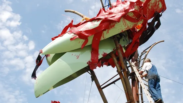 Tien meter hoog kunstwerk drukt Lowlands wortel terug de aarde in