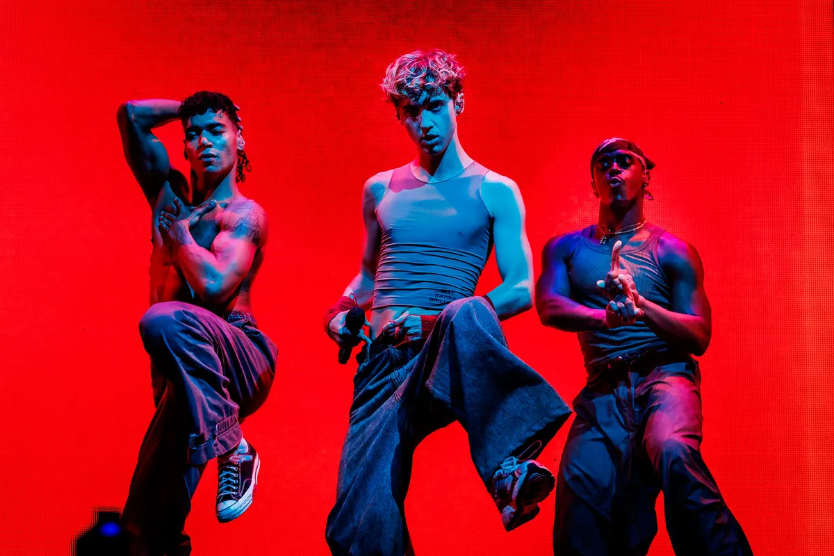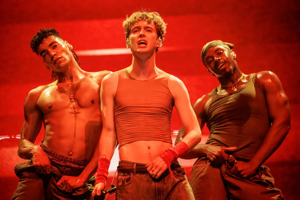 Die liefde dankt Troye aan zijn derde album Something To Give Each Other, een post break-up album, maar toch ook een post-lockdown ontsnapping, een viering van de vrijgezelle lichamelijkheid. Het is veelzeggend dat de nieuwe nummers key zijn in de set. In het begin het intieme ‘In My Room’, een soort duet dat letterlijk op een groot zilveren bed plaatsvindt en waar de romantische spanning vanaf druipt. Veel van Troye’s songs ademen de boyband era van rond de eeuwwisseling (met directe knipoog in Charli XCX-song ‘1999’). Troye Sivan is natuurlijk in zijn eentje geen boyband, maar de samenstelling van zijn dansgroep voelt wel zo: alle kleuren, soorten en smaken, en zelf gaat ie als wellustige twink van hand tot hand. Shout-out is er voor de Nederlandse choreograaf Sergio Reis, die Troye’s videoclips maakte en aan de show werkte. ‘Hij heeft mijn leven veranderd, en hij is hier vanavond.’