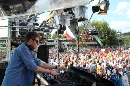 De Belgische dj The Magician – in blauw maatpak gestoken en met toverstokje in z’n borstzak – draait veruit de dansbaarste electro op het festival. Hij mag met een set van anderhalf uur de vroege avond inluiden. Al na een half uur draait hij de remix waarmee hij vorig jaar veel lof oogstte: I Follow Rivers van Lykke Li. Hij draait bij het refrein effectief het geluid zacht zodat de festivalweide de tekst mee kan scanderen. Het is de vraag of The Magician zijn kruit niet te vroeg verschiet door vrij vroeg in zijn set zijn hit te draaien, maar dat lijkt niet zo. De meeste nummers of remixen van zijn hand hoef je niet eens te kennen, het is toch allemaal extreem vrolijke electropop.