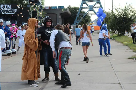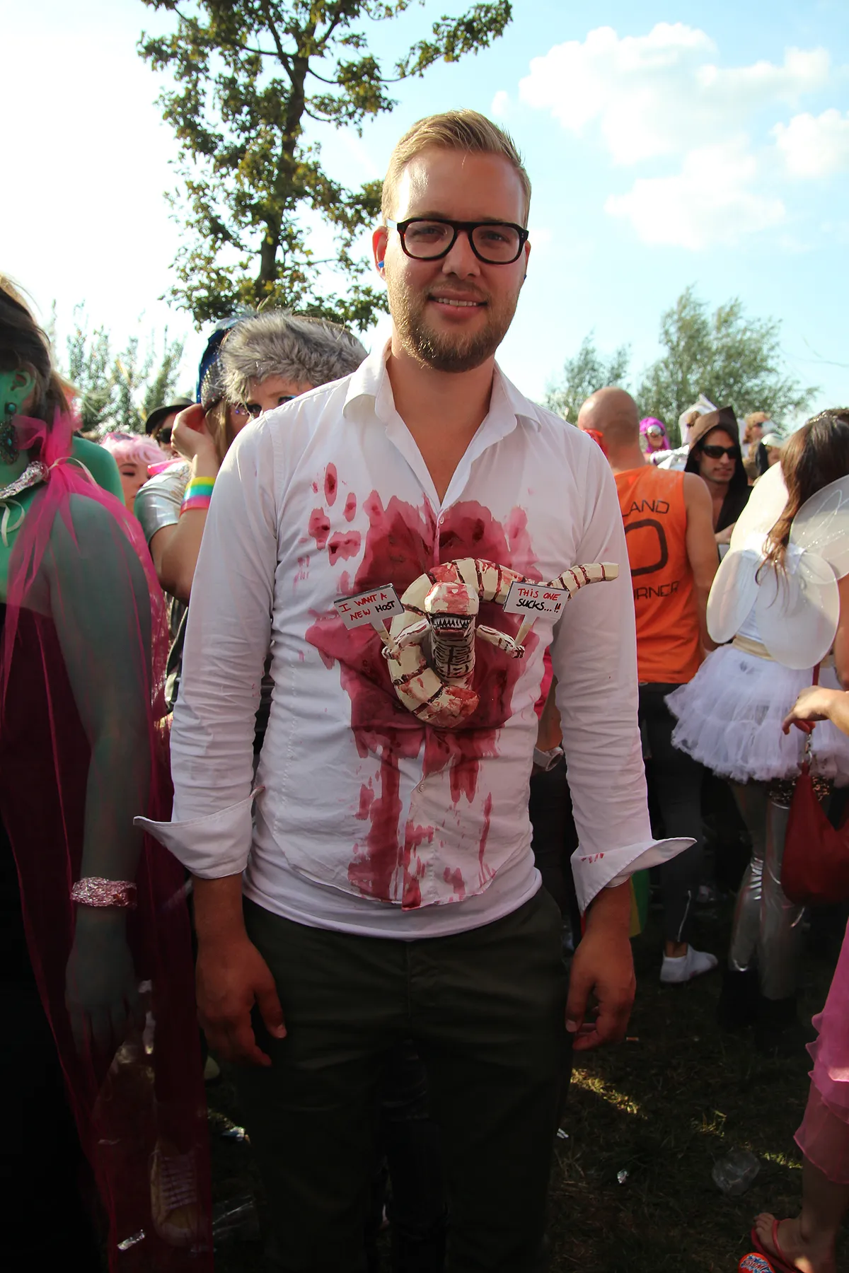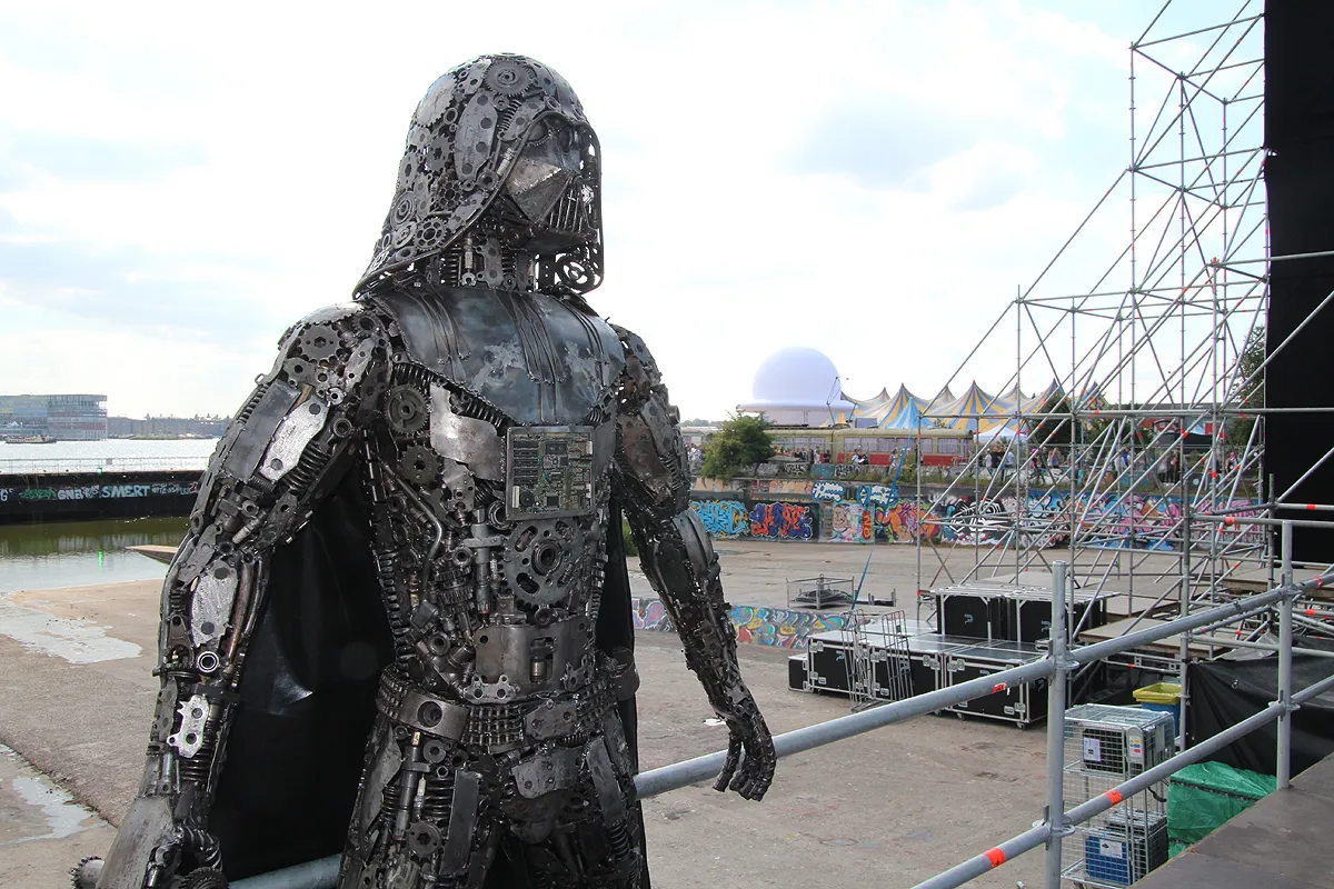 Aliens, aliens, aliens. Afgelopen zaterdag krioelde het zonovergoten Amsterdamse NDSM-terrein ervan. Daar vond de officieuze afsluiter van het festivalseizoen plaats: Valtifest. Oftewel het jaarlijkse excuus om je uit te dossen in je mafste, dolste, gekste en debielste pakje. Voor deze uitverkochte vijfde editie pakte Valtifest buitenaards groot uit. Met ‘Next to Uranus’ als thema kon je alle science fiction-kanten op. Jedi’s, Sithlords, Stormtroopers, Ghostbusters, Darth Vaders, Arthur Dents, Thunderbirds, Trekkies, Spocks, alle SF-clichés en meer liepen er rond. Je zou door de bonte verkleedpartijen bijna vergeten dat je op een muziekfestival bent.