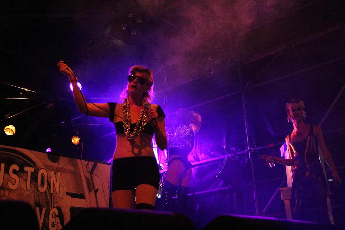 Op het middelgrote buitenpodium Beukplein Vol Gas Met Vice kun je terecht voor een aantal bandacts, waaronder de blonde neonrockers van Vrouwen Zijn Ok! uit Amsterdam. Later op de dag lijkt de horrorrap met dubstep van Dope D.O.D. een vreemde eend in de bijt in de programmering, maar het past op dit podium prima tussen de andere rockachtige acts. Jammer is dat de teksten, waar de driekoppige formatie toch het sterkst op leunt, wegvallen. Toch zet het drietal, waarvan MC Skits Vicious (denk Wes Borland van Limp Bizkit) het meeste angst inboezemt met zijn heftige uit de keel gegrepen raps, een sterke set neer. Peaches doet er een dj-set, waarbij ze visueel wordt bijgestaan door een paaldanseres. Podiumhost Monsieur Plastique dartelt een beetje om haar heen, de paaldanseres vertoont haar trucjes. Peaches bracht onlangs als steunbetuiging aan de Russische punkband Pussy Riot een single uit, Free Pussy Riot! Onder het mom ‘do you want pussy?!’ zweept ze het aanwezige publiek op. Ze komt vanachter haar draaitafel vandaan om de tekst ten gehore te brengen, maar bijster spectaculair wordt het muzikaal gezien niet met de dancepunk-dame.