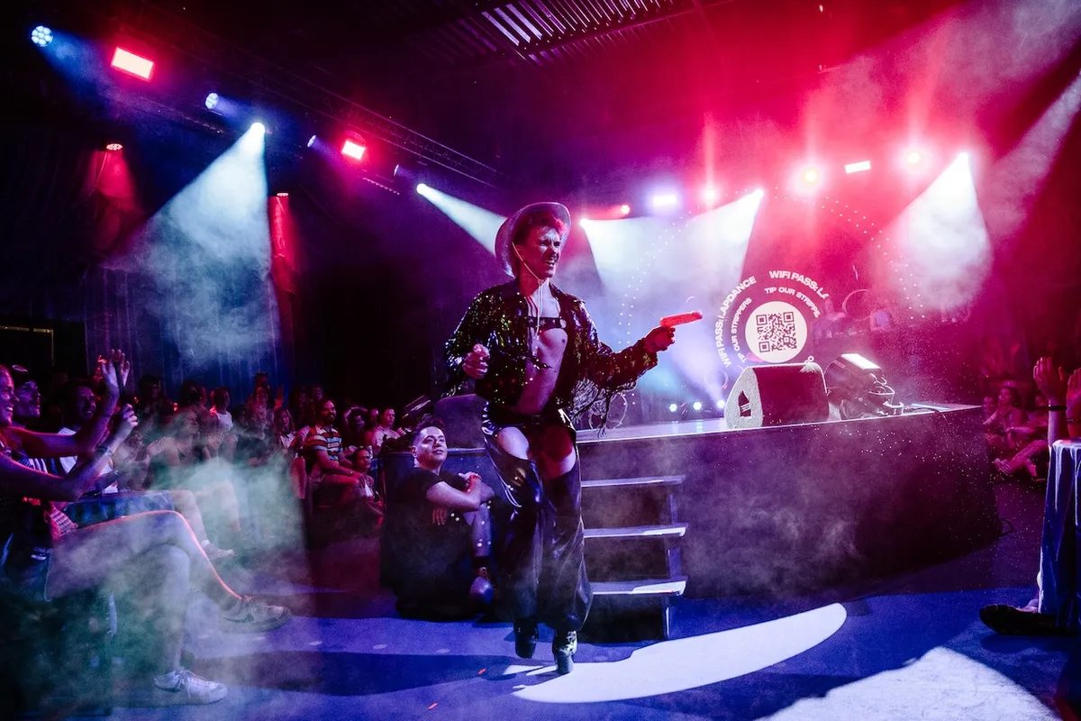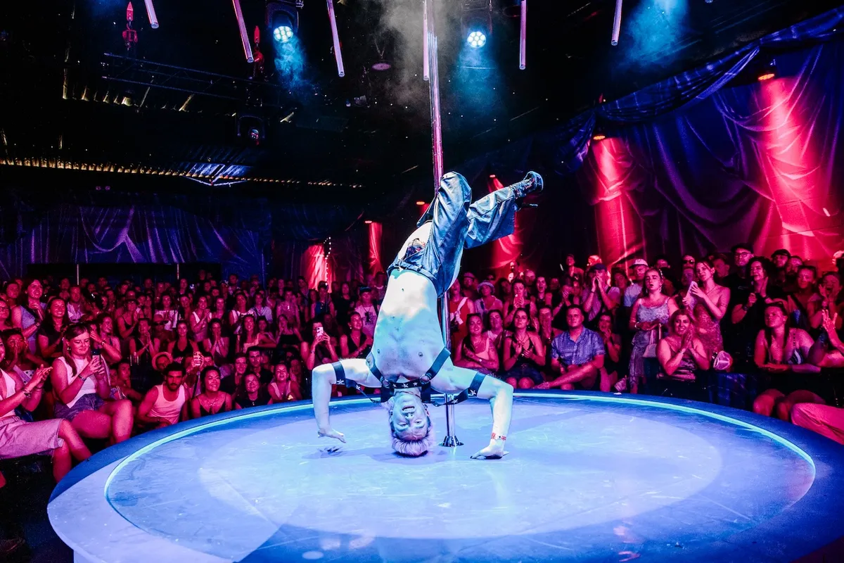 Nog spannender wordt het in dezelfde tent bij Striptopia, waar strippen en paaldansen pas echt tot kunst wordt verheven. Eén van de performers trekt haar bikini uit, maakt met haar polaroid-cameraatje een kiekje, wrijft die ergens waar de zon meestal niet komt, steekt hem vervolgens tussen de tanden… en wijst mij aan om hem uit haar mond te happen?! Daar durf ik geen nee tegen te zeggen. Uw verslaggever klokt uit. Beter dan dit wordt het niet meer.