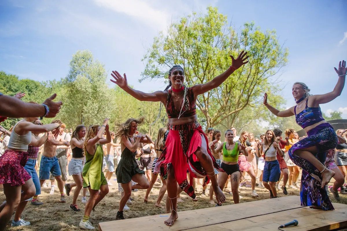 Zo spreidt het volk zich uit: terwijl S10 voor een vol hoofdveld haar hart uitstort, staan vijfhonderd mensen loom te bouncen op relaxte reggae op het Idyllische Veldje, met dat imposante Krackfree Soundsystem dat we ook al op Lente Kabinet zagen, en draait Joeri Woudstra alias Torus op de Radiate VI-stage (die hij met Orpheu The Wizard programmeerde) chillout ambient. En welja, verderop wordt het roze opblaaskerkje van S10’s laatste album opgepompt. De Vlaamse heldin Chibi Ichigos zal er vanavond draaien (na haar dj-debuut op Best Kept Secret een paar weken geleden): EDM-versies van Axel F en Usher, en Stien, Froukje en de gang staan linksvoor mee te dansen.