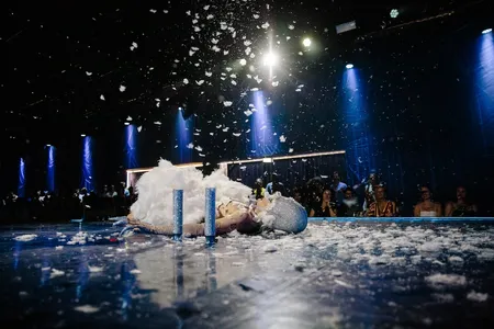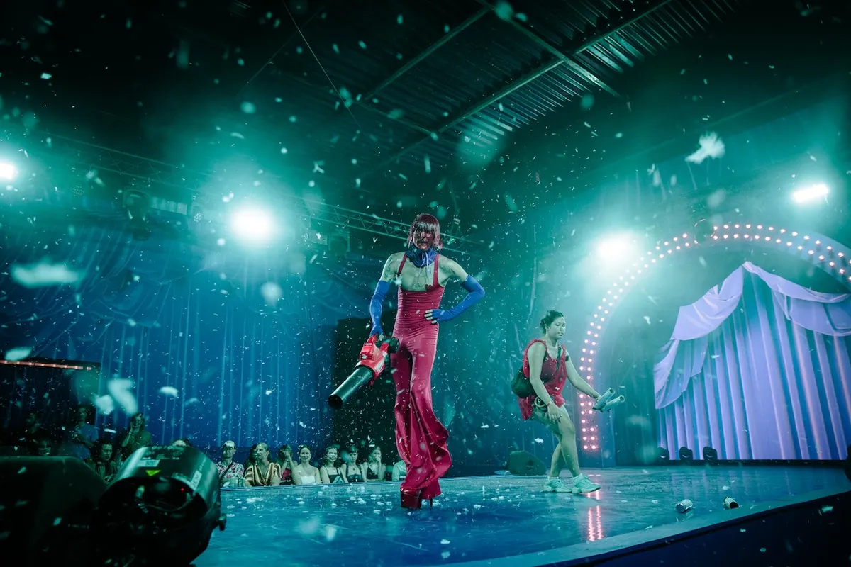 Terug naar de Croque Madame, dat zomaar eens dé hang out van het weekend kan worden: inmiddels is performance-art-collectief Maison the Faux begonnen aan de imponerende revue-show die ze speciaal voor het festival hebben ontwikkeld, en die ze gedurende het weekend negen keer zullen opvoeren. Het is een arty take op o.a. ballroom en drag-kunst, waar een zeemeerman wordt genomen door een sm-meesteres op de hartslag van Nine Inch Nails-anthem 'Closer', en een zwaan-achtig mens veertjes omhoog blaast. Totale eye-candy.