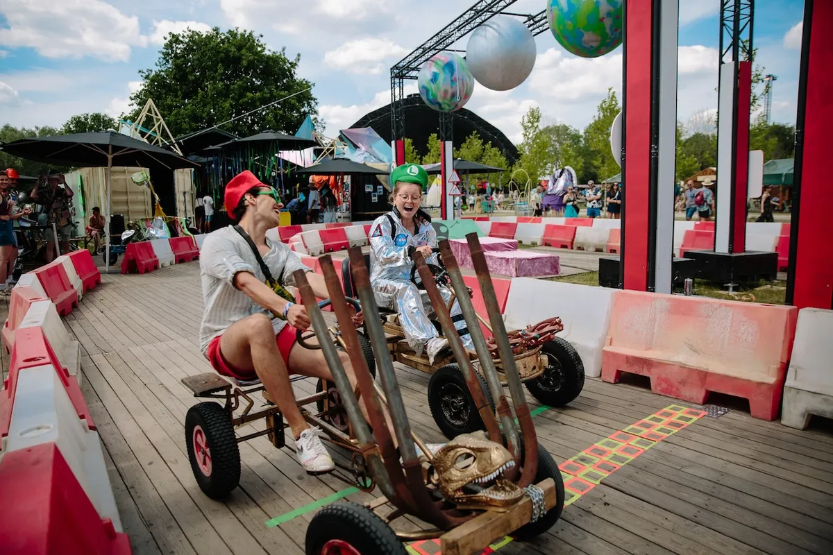 Wie zoekt vindt meer gekkigheid dan hem lief is. Dan zie je links een Mario-kartbaan waar Mario en Luigi op steampunk-skelters voorbij zoeven?! Rechts een touwtjespringtouw om mee te hupsen. Zelfs in de vernieuwde REX, de non-stop dj-stage, zijn mensen om kwart voor 1 al helemaal aan: ze barsten met z’n allen uit in een spontane dansroutine waar dj Kevin Lo keihard van in de lach schiet.