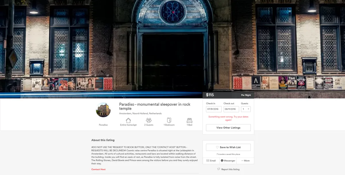Op zoek naar een leuke plek om te overnachten in Amsterdam? Paradiso geeft de komende twee maanden drie koppels de kans om voor het schappelijke bedrag van 100 euro te overnachten in de poptempel. Een actie met een knipoog die naar aanleiding van het 50 jarig bestaan in 2018 in het leven geroepen is. En hoe regel je zoiets? Gewoon via Airbnb natuurlijk.
