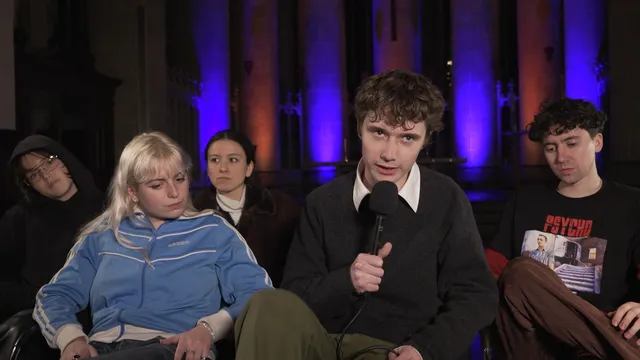 Wij spraken met Black Country, New Road in de Groningse Martinikerk. Over hoe referenties naar popcultuur helpen om emotioneel herkenbaar te zijn, wat de rol is van The Windmill in Brixton en de positieve rivaliteit met andere Speedy Wunderground artiesten als Squid en Black Midi.