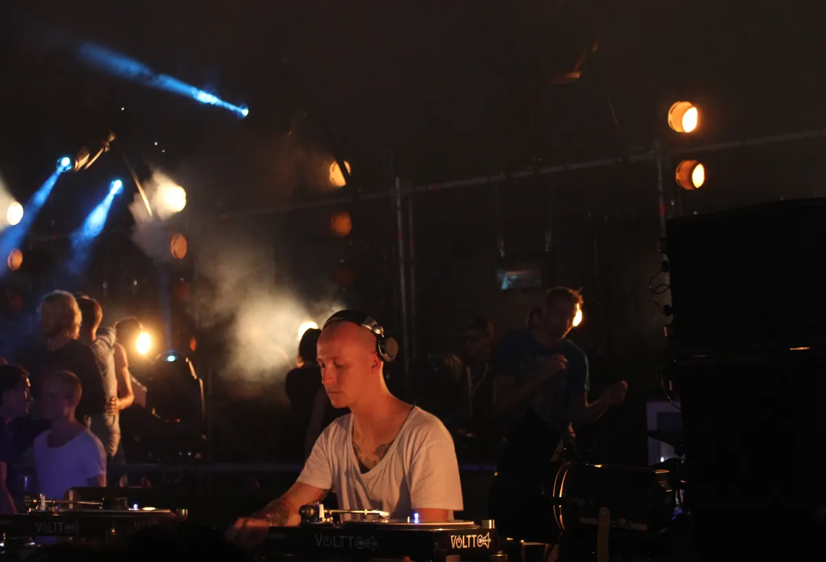 Kenmerkend voor het volle programma is dat er tegelijk met Sven Väth drie live-acts geprogrammeerd staan. Het trucje van Gui Boratto is echter inmiddels wel bekend, van Dense & Pika weet je inmiddels ook wel wat je kan verwachten, en dus wordt het Bob Moses. Een goede keus zo blijkt. Het duo laat zien dat het nog steeds wat voorbarig is om deep house af te schrijven. Er zijn inderdaad wat handige jongens met saxofoons en dwarsfluiten aan de haal gegaan met het genre, er zijn wat ongeïnspireerde grote namen zichzelf gaan herhalen, maar er zijn ook jonge gasten die wel weer een toffe draai aan het genre kunnen geven. Zoals hier. De verdeling onder de twee is duidelijk. De een regelt de knoppen, de ander legt accenten op gitaar en zingt. De potentie voor een echte doorbraak is er. Gelikte licks, opzwepende gebaartjes alsof ze voor een enorm festivalterrein staan in plaats van het kleinste Vollt- tentje, en een handvol prima tracks. Het mist alleen nog aan een echte hit, en aan de kunst van het doseren. Hoe goed de zanger het ook doet: als hij iets vaker zwijgt, zou zijn zang een stuk meer impact krijgen dan nu.