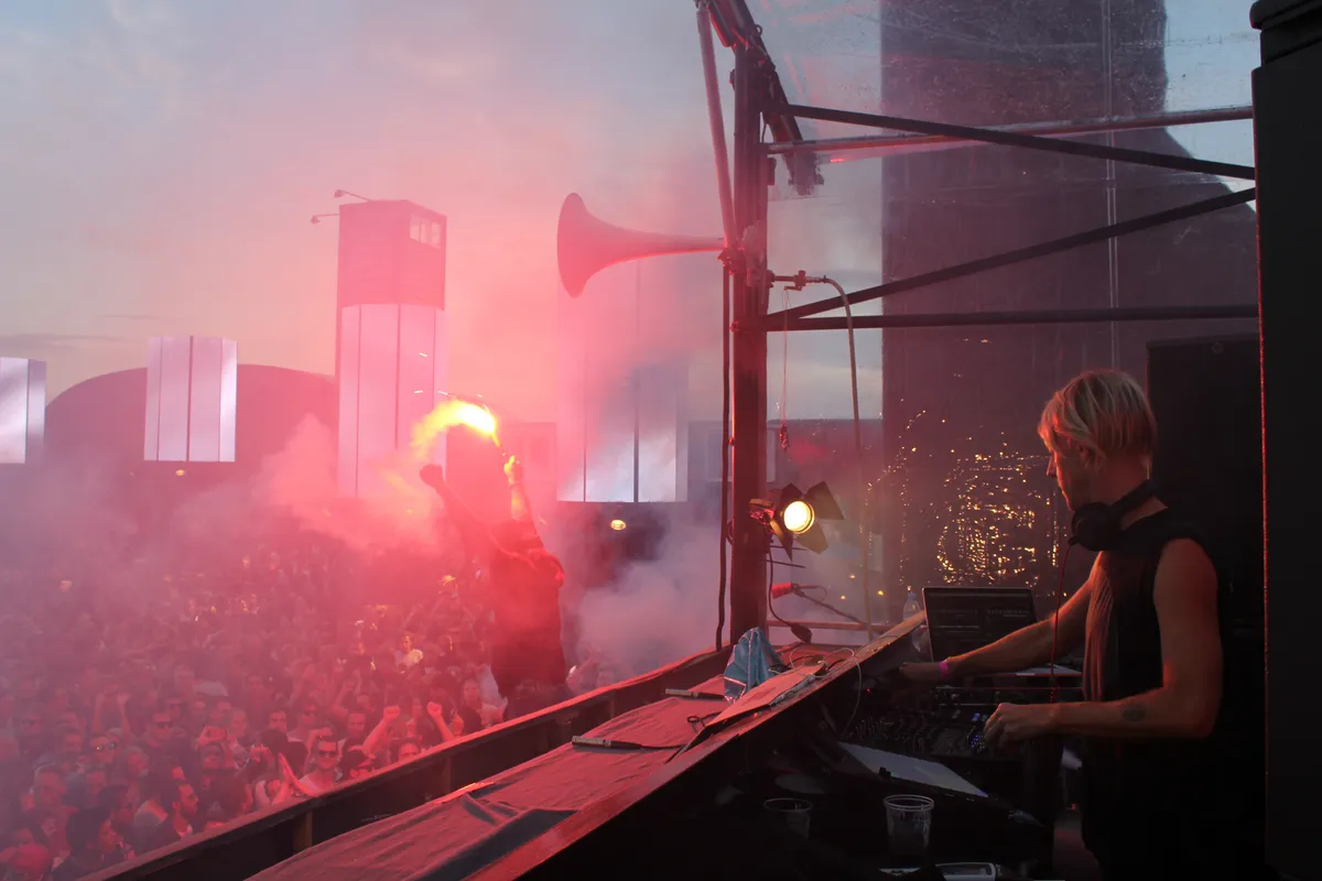 Ongeveer tegelijk op het hoofdpodium heeft Richie Hawtin namelijk het volledige terrein vol getrokken. Logisch voor een headliner, maar het knaagt ook wel een beetje. Hoe strak het allemaal ook weer in elkaar zit, echt spannend is het niet meer. De oude rot lijkt toch net iets te plichtmatig zijn pony opzij te zwiepen om zijn eigen kunstje voor de zoveelste keer op te voeren.