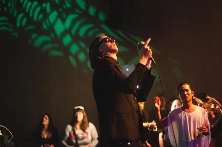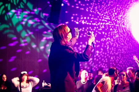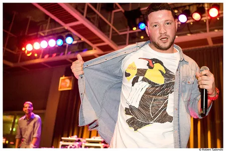 Lefties Soul Connection maakt korte metten met dit zware gevoel. De Amsterdamse funk past zo goed als een tweede huid. Zeker met het vleugje soul dat gastzangeres Michelle David toevoegt aan het ensemble. Met gifrood gehakte pumps claimt ze het hele podium en publiek. Nu pas lijkt de filmnacht écht begonnen te zijn. De band tovert cowbells en tamboerijnen tevoorschijn, terwijl een zelfbenoemde danser vol overtuiging zijn – nog niet afgeleerde – ‘staying-alive-dansje’ afstoft. Verderop, in de kleine zaal, staat DJ Sandeman een select groepje te entertainen met zijn vunzige jaren 80/90 elektro. Naarmate de tijd verstrijkt wordt het warmer en drukker op de dansvloer. Reden? Le Le komt (HARD!). Hij laat tout hip Rotterdam zweten in hun skinny jeans. “Er mag gedanst worden!” Aldus Faberyayo.