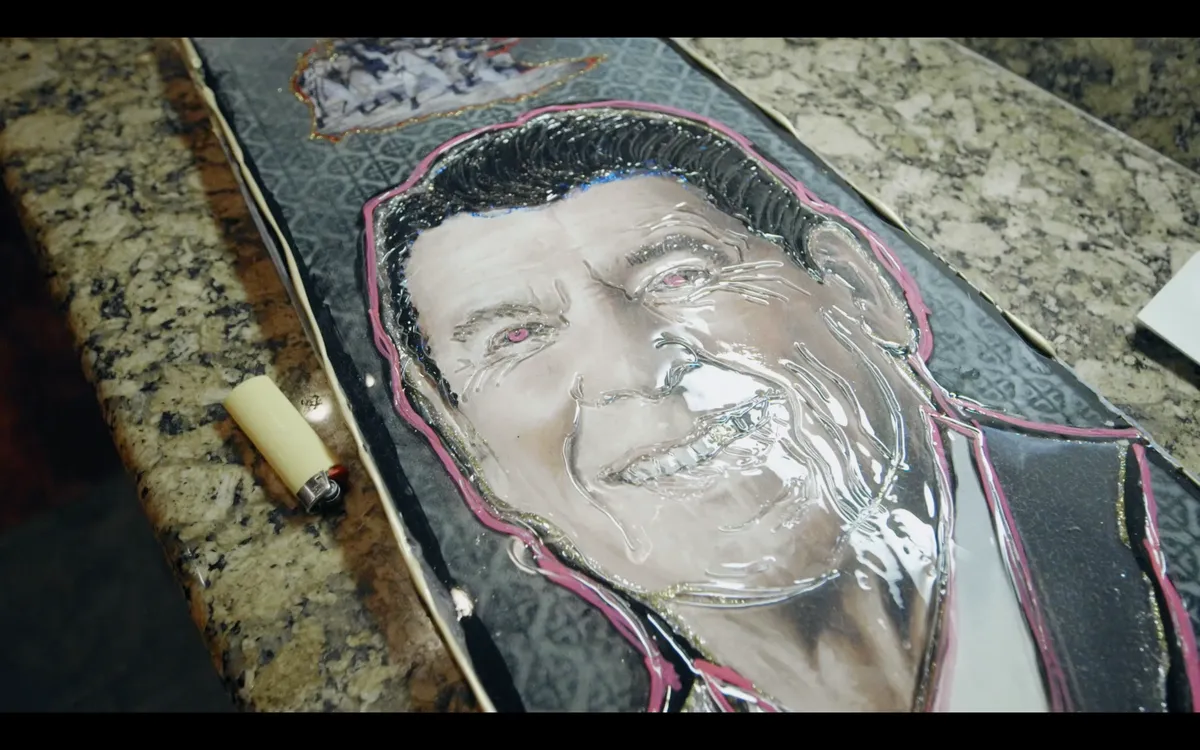 De documentairemakers van Vice versterken dit gevoel van ironie. Hughes vertelt bloedserieus over zijn ambities als dominee en de camera zoomt in op zijn officiële diploma. Dan beweegt het beeld naar beneden en zien we een sierlijke stenen plaat met een rietje en een visitekaartje, overduidelijke drugs-parafernalia. Schitterend is ook de scene van Jesse Hughes in Austin tijdens SXSW. Eerst zien we een typisch spring break meisje dat dolgraag aan de cameraman haar ‘titties’ wil laten zien, dan Jesse Hughes die een katholiek snuisterijen-winkeltje opzoekt om de inauguratie van de nieuwe paus op tv te kunnen zien. Het is geestig en ontroerend tegelijk als Hughes de kassajongen van de winkel uitnodigt voor zijn show die avond.