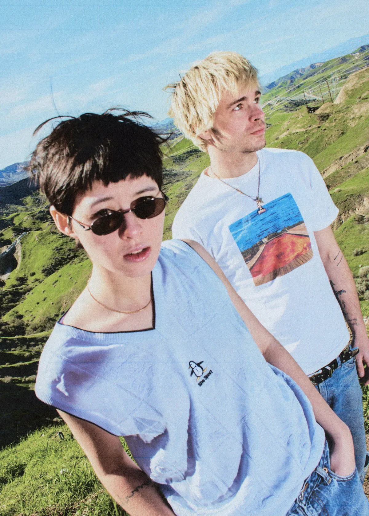 Alsof Sonic Youth en New Order een knokpartij hebben… onderwater. Zo klinken de liedjes van het experimentele popduo Water From Your Eyes. Tenminste, dat is wat een ladderzatte Brit ooit tegen het tweetal zei. ‘Wát een hufter was dat! Toch is het de meest accurate beschrijving die we ooit hebben gehad’, zegt zanger Rachel Brown. ‘En ook de grappigste’, grinnikt multi-instrumentalist Nate Amos. Het duo zit er nogal doezelig bij onder de dekens van hun hotelbed. Wat lijkt, nét op tijd wakker voor het Zoom-interview en nog lichtelijk gedesoriënteerd. Hun Oostkust-tour zit er dan wel bijna op, maar de New Yorkers hebben nog een hele hoop shows voor de boeg. Dit weekend staan ze op Lowlands. ‘Toen ik net wakker werd, wist ik een paar minuten niet waar ik was’, gaapt Brown vanuit de hotelkamer in Calgary, Canada.