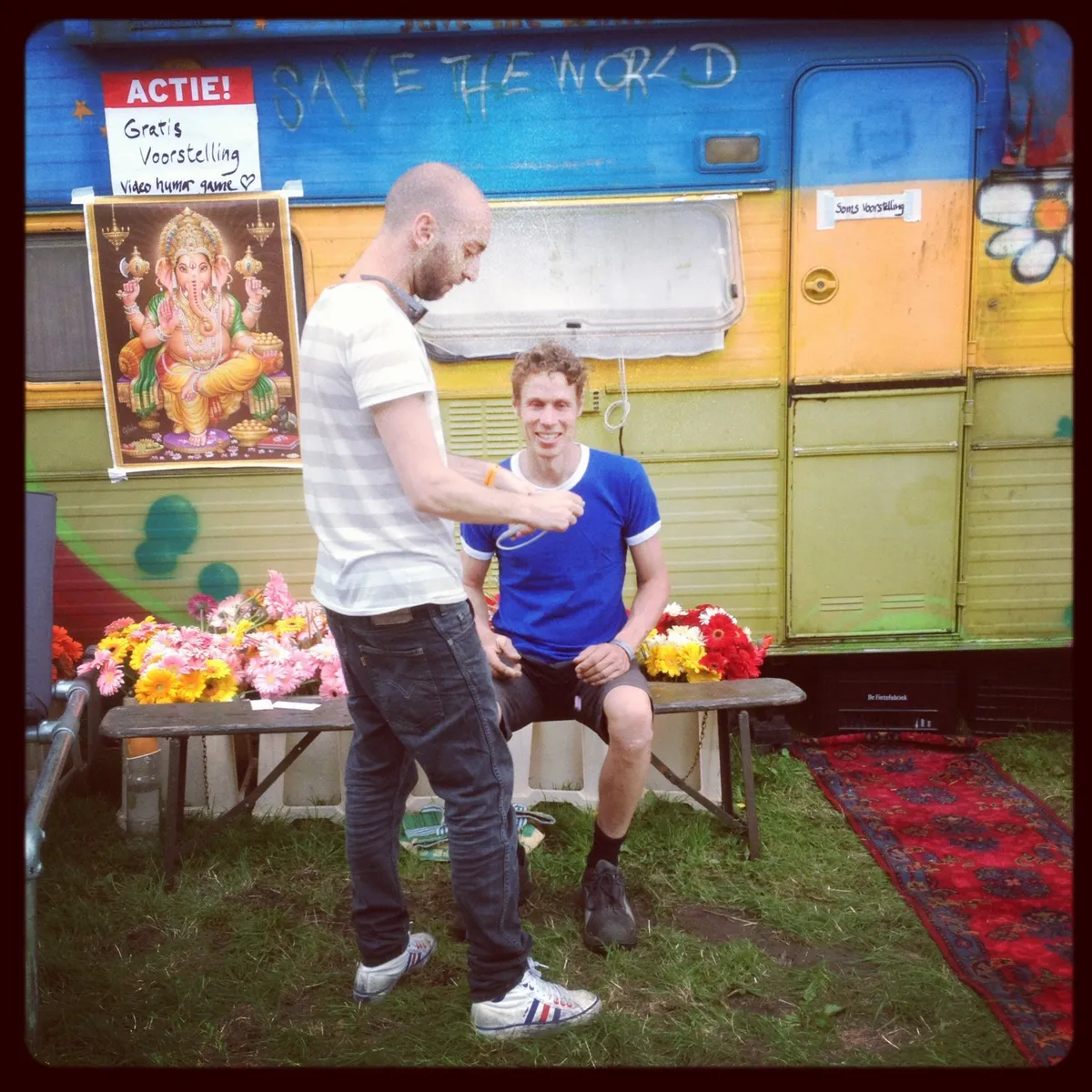 Daar sta je dan, in de natuur bij Landsmeer, net boven Amsterdam. Geen batterij in je camera, geen portemonnee. "In de toekomst heb je geen portemonnee en geen batterij meer nodig. Welkom in de toekomst", probeert iemand nog. Een spreuk die heel zo gek nog niet is op Welcome To The Future, het hippie technofeest waar zelfs het confettikanon voor het regenbooghoofdpodium bloemetjes spuit. Het optimisme spat er zo van de gezichten dat zelfs de wolken er van lijken te schrikken. Ach, een Instagram fotoverslag dan maar?