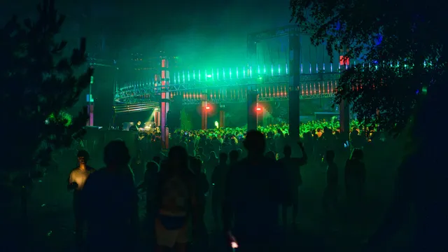 Struikel vervolgens de nacht in, langs de raustechno van Mary Lake in een bomvolle Duinpan, verdwaal even keihard op zoek naar het Bamboebos (waar de fuck zit dat paadje nou?!), en loop via minimal held Fumiya Takada (die daar net een garage house-klassieker staat te draaien tussen de bosjes) richting de piepkleine Lodge… om daar tegen een gigantische opstopping aan te lopen. Er wordt geduwd, gepropt, gedrongen om tussen die smalle poortjes heen te komen. Wie hier draait? DJ Europarking, het rave-alias van Pascal Pinkert, de Amsterdamse wave-man die we ook wel kennen als Dollkraut en De Ambassade. In de coronatijd bundelde hij z’n opgekropte knaldrang in een EP vol ghettotech en fietsbroekjes-rave, en scoorde hij een hit-EP op het label van Ellen Allien. Zijn set zit precies in die lijn: bloeddorstige ravestabs, harcorekicks op de schaal van Richter, geflipte hiphopsamples en bailefunk-vocals. Het zijn waanzinnig effectieve beukplaten, hij walst er als een mammoettanker mee over de Lodge en krijgt er ook de glitterkwallen mee aan het dansen.
