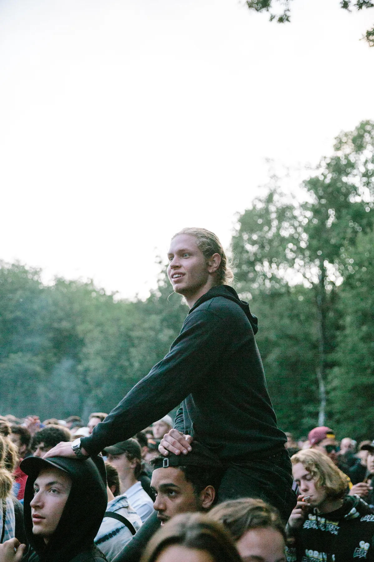 Zeker op de zondag voelt vrijwel alles als een opmaat naar de show van Scott. Zo zijn er gasten die al sinds vijf uur ’s middags vooraan het voorste vak tegen het hek gekleefd staan omdat ze hem niet willen missen. Ze leven op glaasjes water die de beveiligingsmannen toereiken, maar worden ’s avonds in de gekte meteen platgedrukt en voor hun eigen veiligheid alsnog uit het vak gevist.