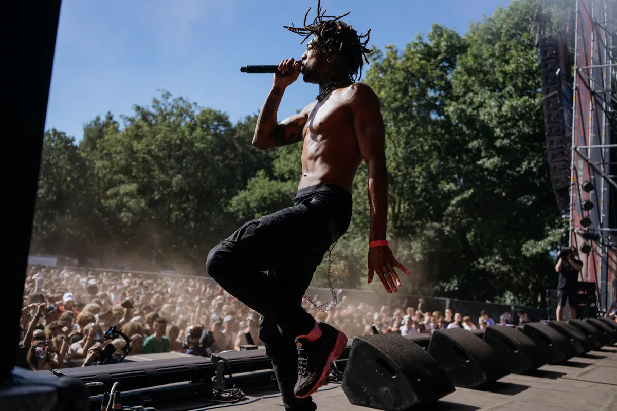 In de middag is het lang zoeken naar waar het nou echt gebeurt. In principe heeft Junglepussy alles in huis om het te laten werken. Over zomerse boombap rapt ze scherp grappend over hoe ze bijvoorbeeld geen seks heeft met een gast, maar dat hij wel haar boodschappen tilt en haar tenen likt. De scheut lome r&b maakt het perfect voor zo’n trage, net te warme dag, maar toch staat het minder dan halfvol in de tent. Maar de mensen die er zijn, dansen allemaal. Blijkbaar wil de massa toch liever wat meer vuur, zoals bij A$AP Twelvyy, in de enorme tent bij de toegangspoort. Het lijkt niemand uit te maken dat zijn dj meer rapt dan hij zelf, de hits en zijn uitstraling zijn genoeg. Die uitstraling ontbreekt totaal bij r&b-superster Ty Dolla $ign. Nadat hij opent met een van de vele XXXTentation-tributes van de dag, is het al snel klaar. Hij mag dan twee tracks op de laatste Drake album hebben geschreven en eentje op de plaat van Beyoncé en Jay Z, zo’n show als deze werkt zelden. Eindeloos alles stil leggen om fans op het podium te halen om mee te blowen lijkt sympathiek, maar de 10.000 man die er naar moet kijken heeft er niets aan.