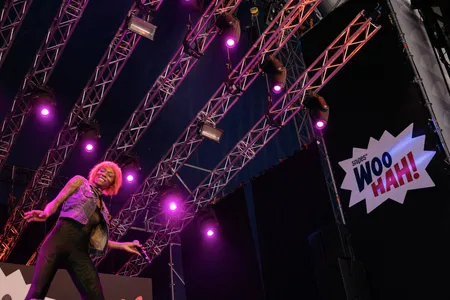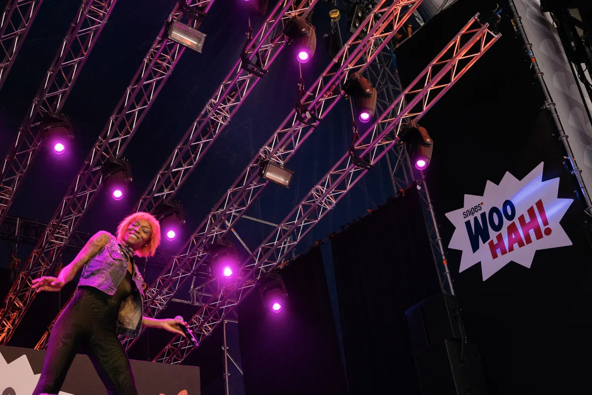 Het is een uur 's nachts na een dag vol verzengde hitte en stoflongen, en er past niemand meer bij op het op twee na grootste buitenpodium. Dan kunnen de shows nog zo wisselvallig zijn geweest vandaag, de verhuizing van WOO HAH! is nu al een groot succes.