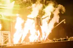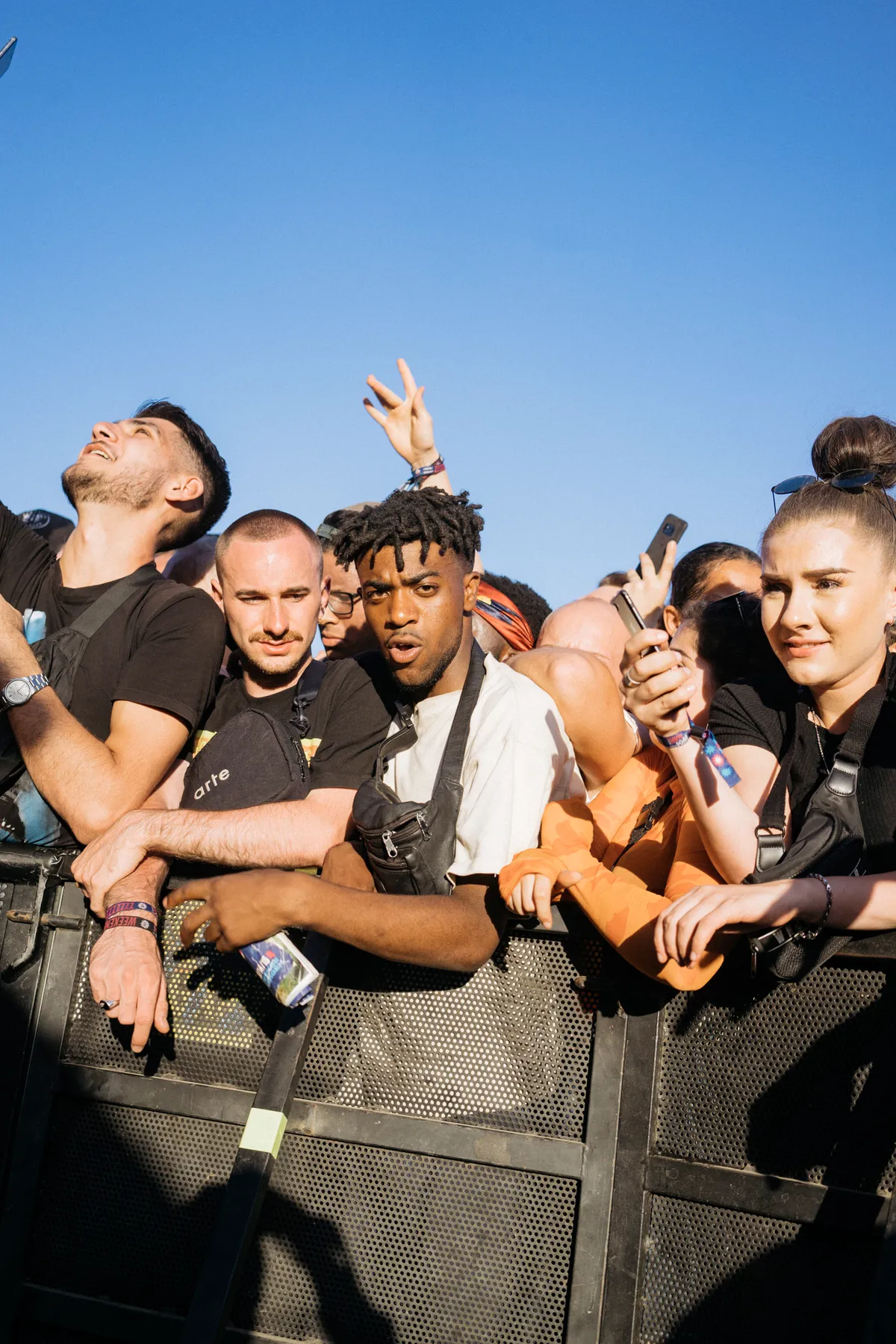 Niet iemand die het er ook maar iets rustiger aan doet vandaag. Kijk dan hoe Scarlrxd het Forest Stage helemaal aan flarden schreeuwt. Op tracks als 'Heart Attack' lijkt de Brit eerder te grunten dan rappen, op het randje van het podium headbangend op kicks die nog het meeste weghebben van nu-metal. Zijn dj – een schriele witte puistenkop van een punker met roze geverfd haar – geeft al evenveel energie. Effe een track aan zetten, dan sprintjes heen en weer tracken en op de speakers klauteren terwijl tientallen jongens voor hem stof happen in de moshpits.