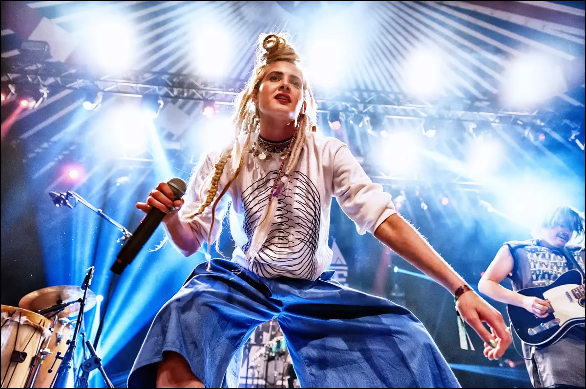 Zo is de Action Factory net als het hele weekend het echte centrum van het festival. Hier krijg je het best de sfeer van het onhippe bungalowpark mee, met die fijne kinderlijke arcade-hal achteraan, de bowling en de klimmuur achter het podium. Het podium werkt goed, als een soort arena met een ruime boog. Je kunt beter hier staan dan op het grote hoofdpodium om de hoek. Die tent is zo groot dat alle bezoekers er in passen, maar gedurende zo’n weekend zijn er natuurlijk niet veel acts die het hele publiek naar zich toe trekken.
