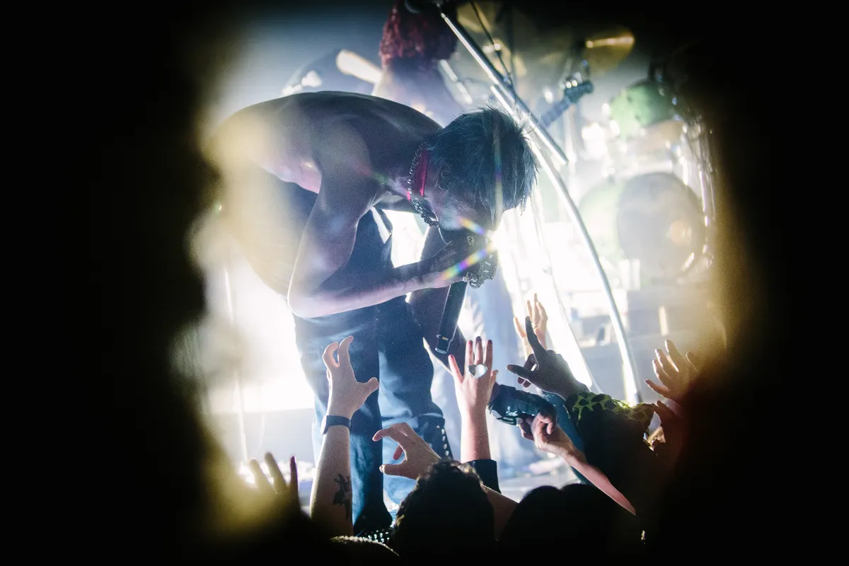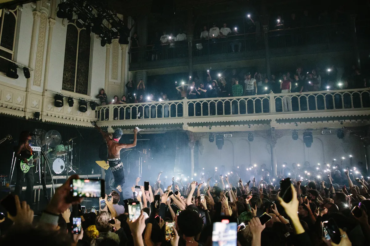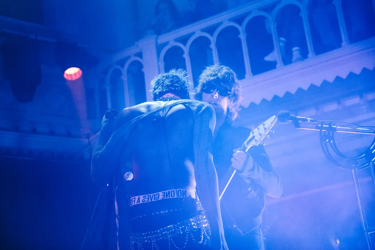 Die momenten zijn eigenlijk leuker dan de straightforward rocksongs waar hen soms wat slecht bij stem is, en die hun in leer gestoken glamrockband ook wel heel stevig rockend vertolkt. Vooral die gitarist, de ene moment vervalt hij in een waanzinnige pentatonische scheurmodus, het volgende begint hij als een razende te vingertappen alsof ie Eddie Van Halen is. De vraag die dan komt bovendrijven: wil Yves Tumor nu echt die flamboyante rocker zijn? Of speelt hen juist met het cliché? ‘A parody of a pop star’, zucht hen in het prachtige ‘Parody’, om een liedje later de microfoon tussen de benen te klemmen, zonnebril op te zetten en uiteindelijk zelfs als een slang over de rand van het podium te kruipen. En kijk eens naar de fans vooraan, die telkens idolaat naar de hand van Yves Tumor proberen te grijpen. Ach, wat maakt het ook uit welke gedachte erachter zit, want deze tongue-in-cheek-rockshow is super-overtuigend.