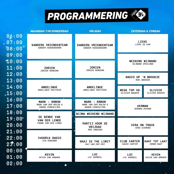 Vanaf maandag 3 september elke maandag t/m donderdag op 3FM