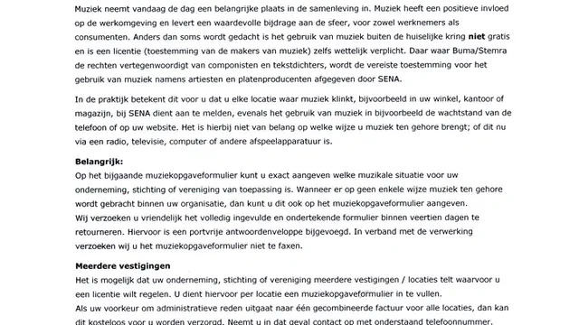 Opwinding onder kleine zelfstandigen. Veel eenmansbedrijfjes (ZZP'ers) vonden een dezer dagen een brief van SENA op de deurmat. De stichting die de naburige rechten int, wijst mensen er met een algemene brief op dat muziekgebruik buiten huiselijke kring niet gratis is. Voor bepaalde vormen van muziekgebruik moeten bedrijven bij SENA een licentie afsluiten. Op fotografenforum DPZ heerst irritatie, en ook verschillende individuele zelfstandigen kijken op van de brief. “Het zou belachelijk zijn om mij te laten betalen”, zegt muziekfotograaf Nick Helderman. “Ik heb geen kantoor, maar luister gewoon thuis naar muziek."