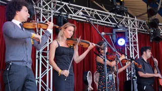 Pearl Jam-frontman overviel het Red Limo String Quartet backstage met de vraag