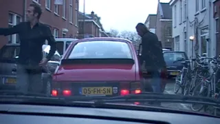 Een tour van een dag met twee rode auto's ter promotie Red Car